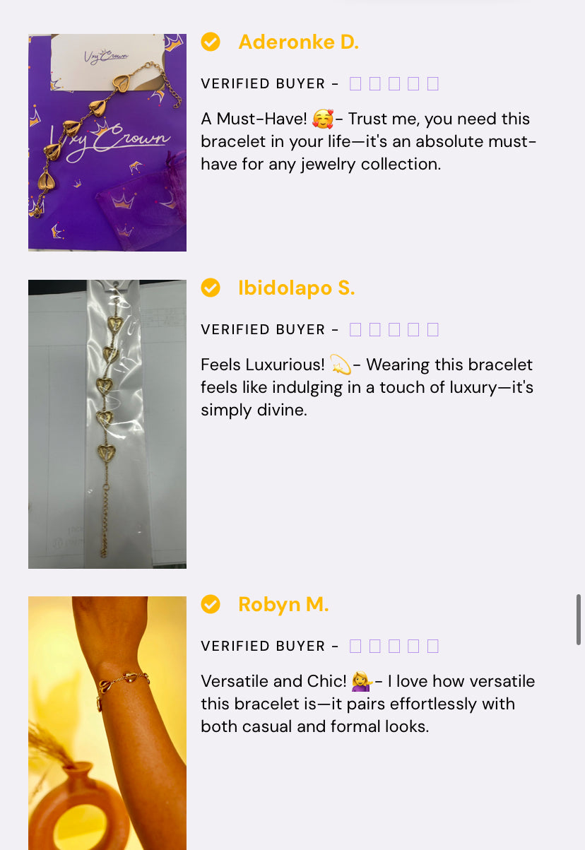 Brace yourself for the positive reactions that may come your way! We cannot be held responsible for the uplifted spirits, compliments, or envious glances you may encounter while wearing your VxyCrown Heart-Shaped Cowrie Bracelet.